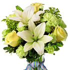 This long-lasting basket planter comes with a variety of hearty green plants and fresh flower accents and is easy to transport from hospital to home. When ordering, please specify baby girl, baby boy, or gender unknown for appropriate color scheme.